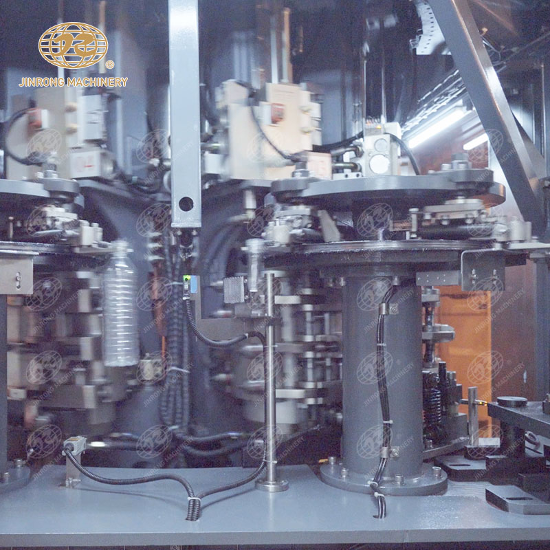 旋轉係統:是吹瓶設備的核心部分,由轉盤、驅動電機、減速機等組成。轉盤上均勻分布著多個模具工位,通過電機和減速機的驅動,轉盤能夠以一定的速度旋轉,使瓶坯在各個工位之間依次進行加熱、吹塑、冷卻、脫模等操作,實現連續自動化生產。
